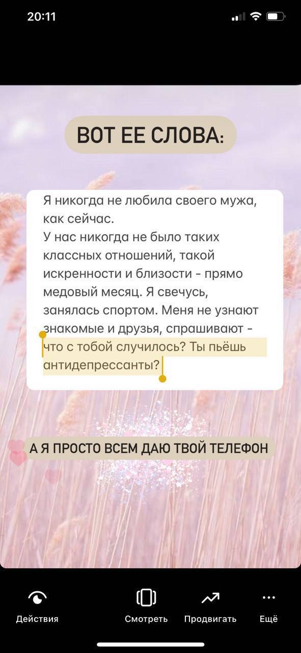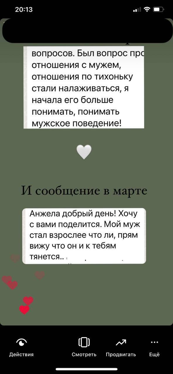 Знаешь, почему это работает? Потому что в каждом вопросе — частичка моего опыта и твоей уникальности. В вопросы зашита уникальная технология: во время написания ответов происходят глубочайшие осознания, которые сразу меняют нейронные связи. Ваши отношения выходят на новый уровень.